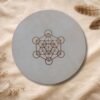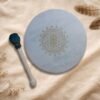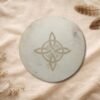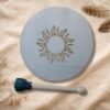 El marco del tambor puede ser grabado con símbolos, palabras o elementos significativos como nombres, fechas, mantras o intenciones. La cantidad de símbolos varía según el tamaño del tambor, permitiendo un diseño armónico y equilibrado que respeta la energía y la estructura del instrumento.