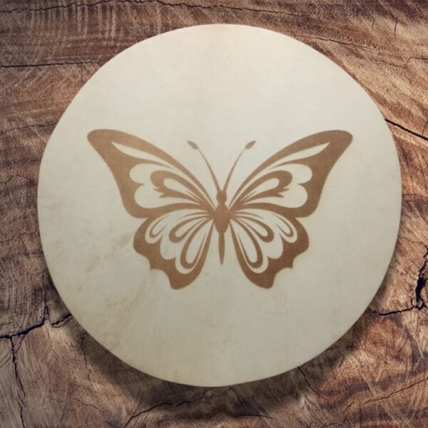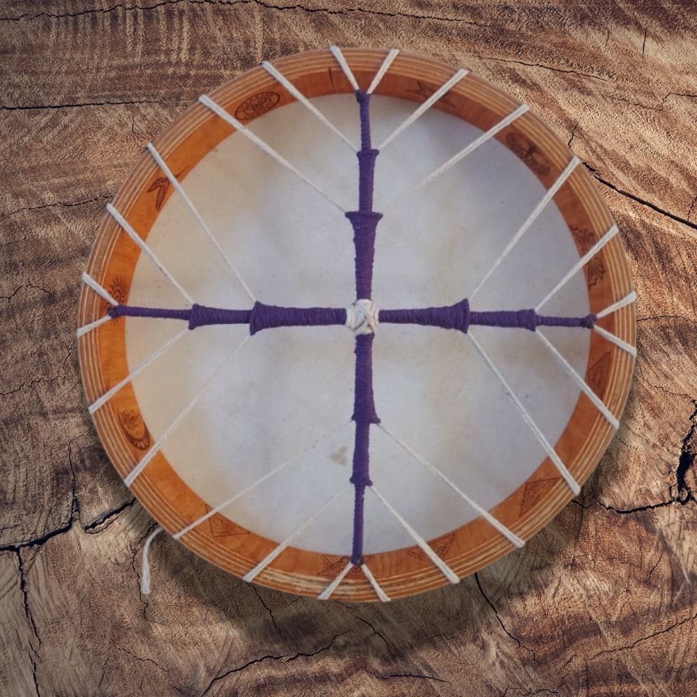 En el tambor de 35 cm puedes incluir hasta 8 símbolos o dibujos en su interior, cuidadosamente grabados en el marco, formando un mapa íntimo de intención y propósito.