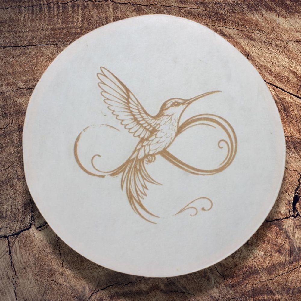 Al incorporar un grabado, el símbolo pasa a habitar el centro mismo del sonido. Cada golpe no solo emite ritmo… también activa la intención que fue plasmada en la piel.