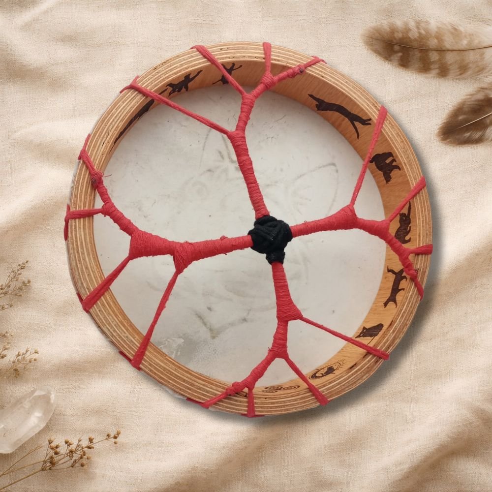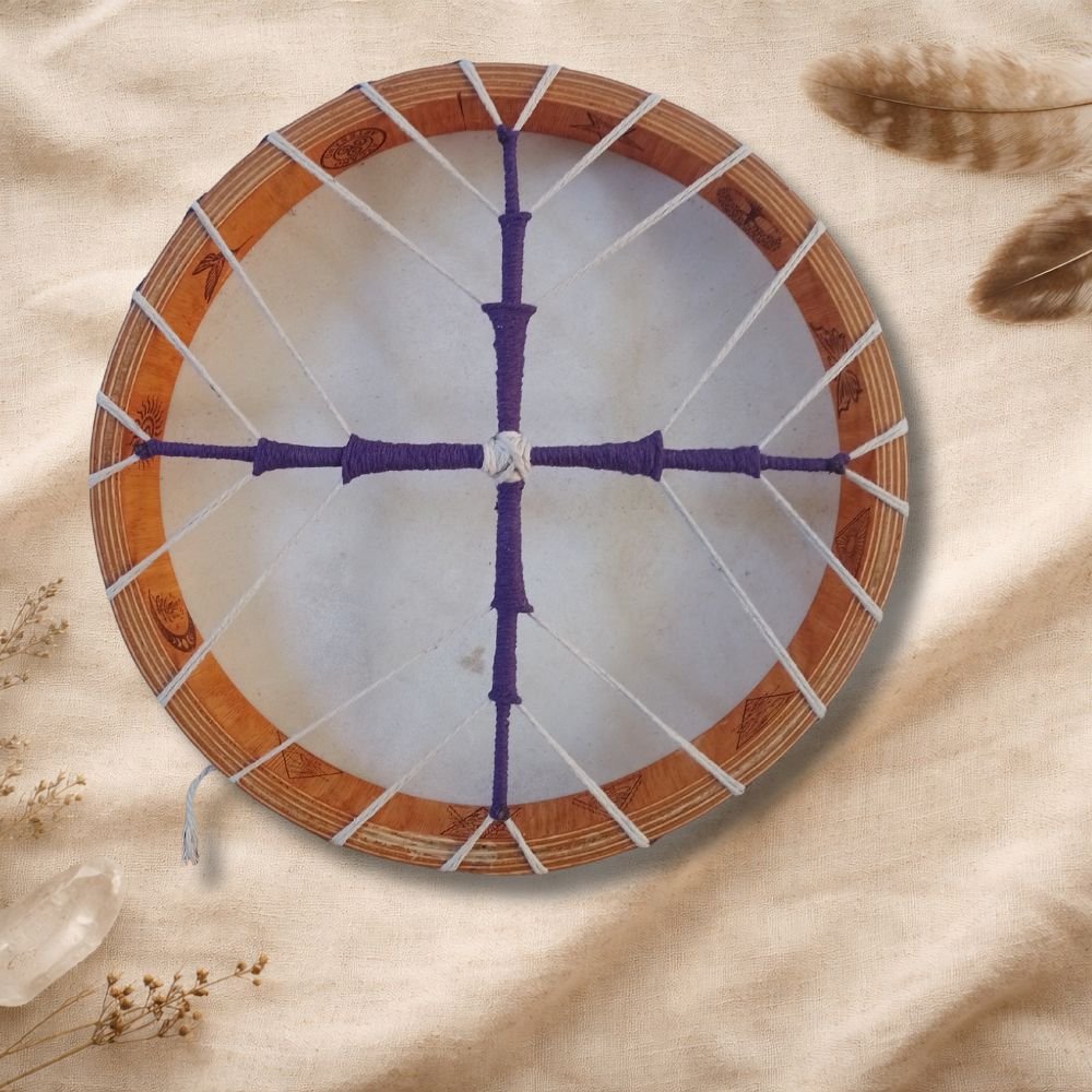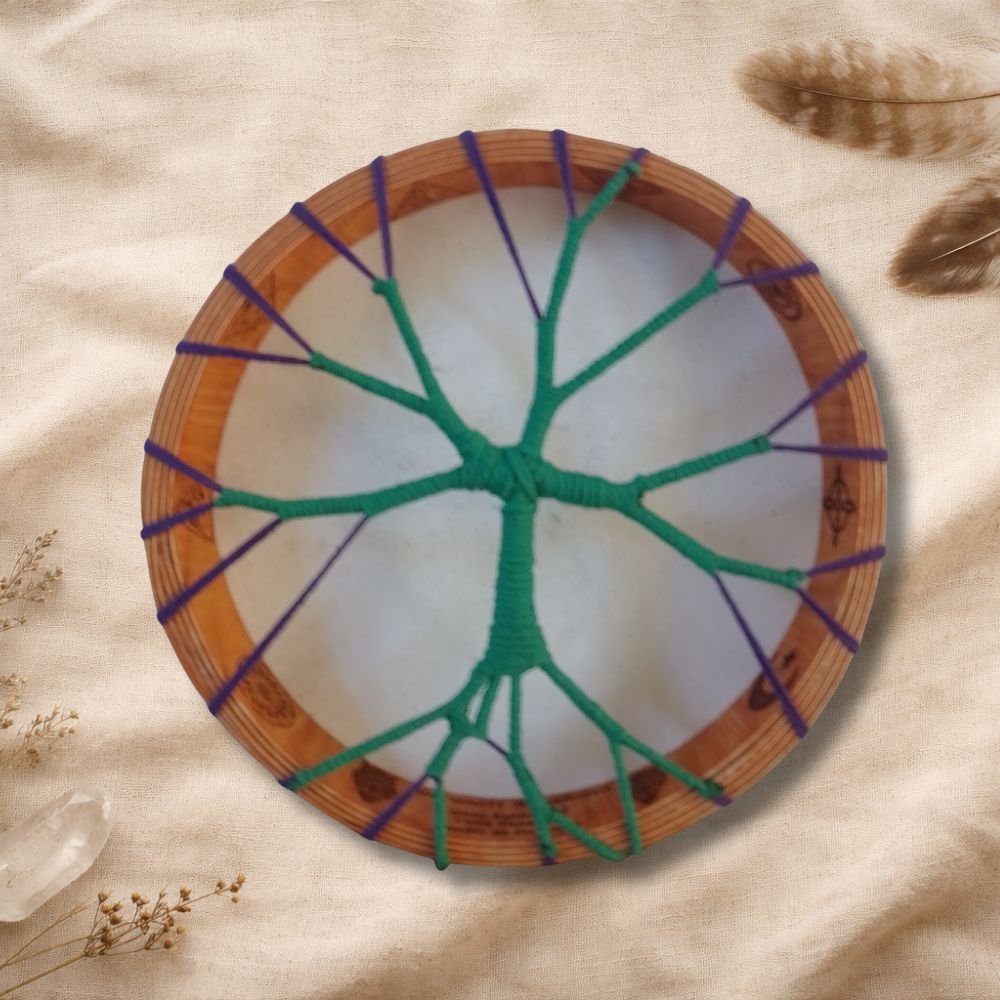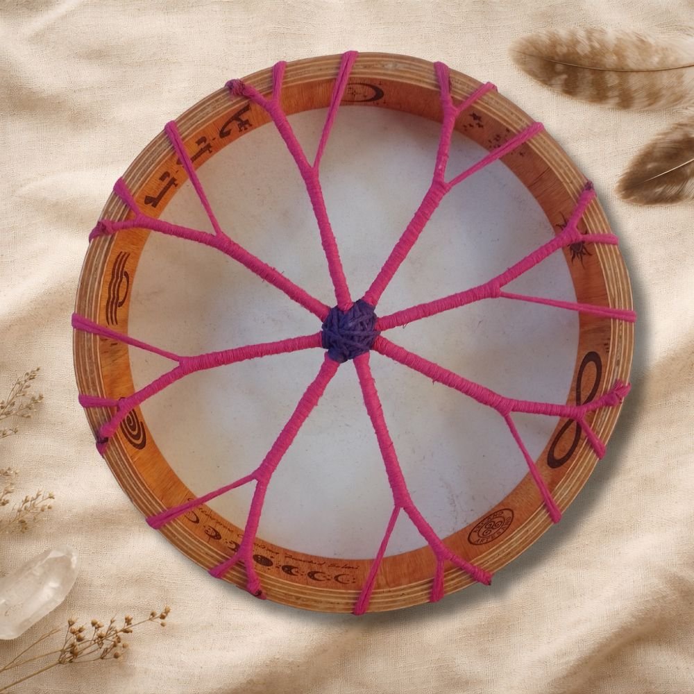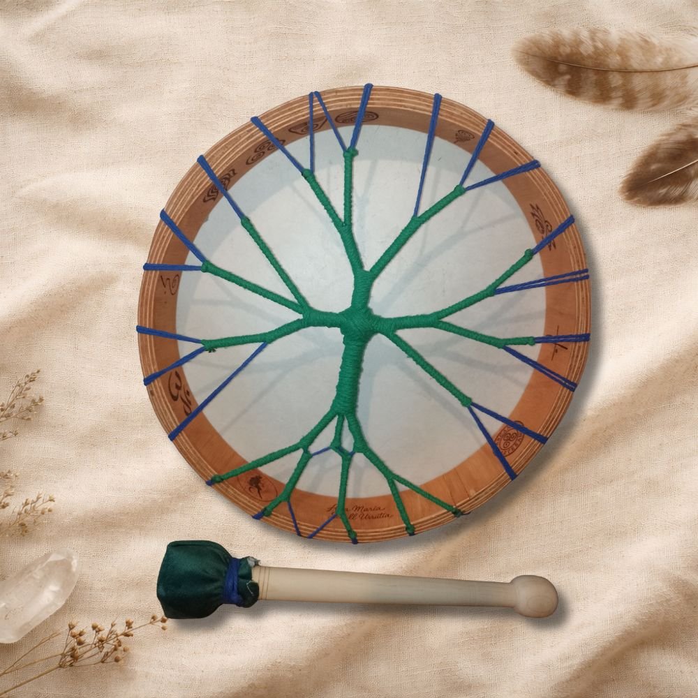 El tambor chamánico es un instrumento sagrado, un puente entre el corazón y el espíritu, que nos acompaña en viajes internos, rituales, ceremonias y procesos de sanación profunda. Su sonido ancestral nos recuerda el pulso de la Tierra y el latido primordial que habita en todo lo vivo.