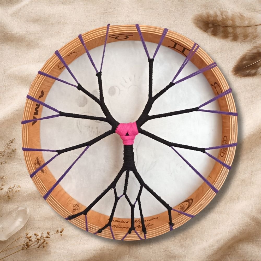 En Arcano Artesano, cada tambor es creado de manera consciente y ceremonial, y puede ser personalizado especialmente para ti, convirtiéndose en un aliado único en tu camino espiritual. Al incorporar símbolos, nombres, fechas o intenciones, el tambor deja de ser solo un instrumento y se transforma en una extensión de tu energía, fortaleciendo la conexión, el propósito y la vibración con la que trabajas.